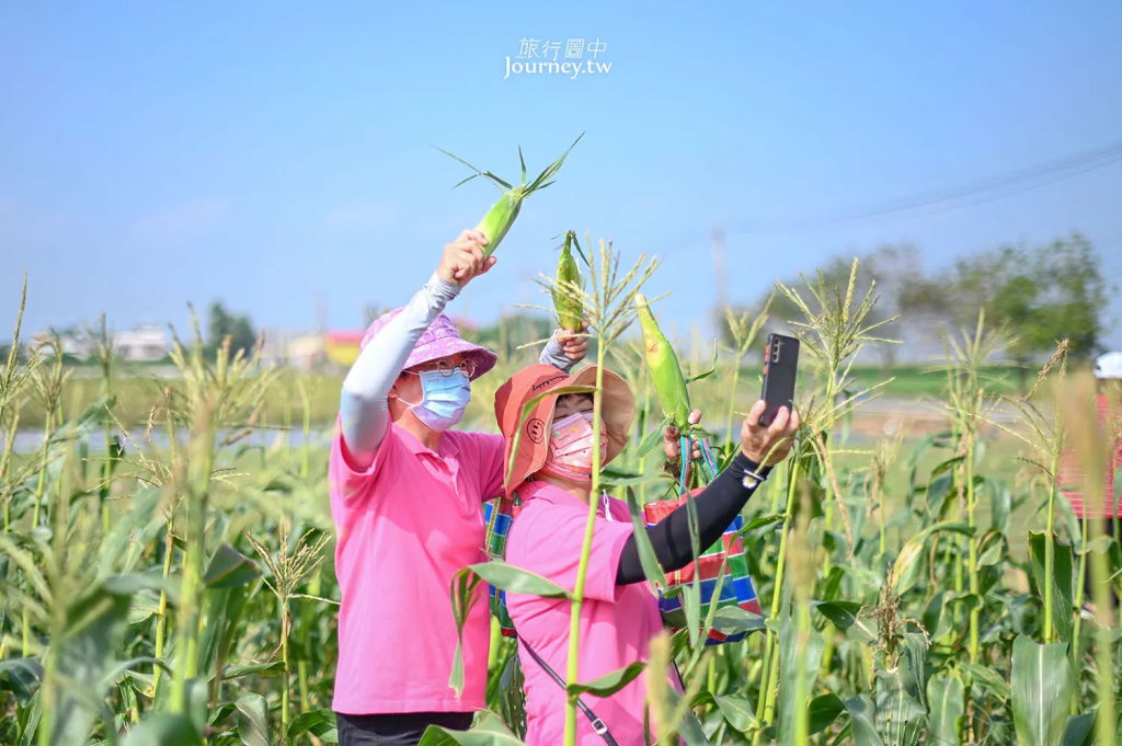 ▲提著有台灣LV袋的茄芷袋下田採收玉米,別有一番風味。(圖片來源:部落客「許傑,旅行圖中」)