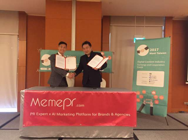 「其实有很多企业是很有能量往外扩张的,但不管是到国外行销或试水温,以往都旷日费时,或因不懂当地文化煞羽而归,而MemePR 可以协助企业,利用网路平台直接和当地人合作,在最短的时间内,了解当地市场,并让当地人直接帮企业做行销」MemePR 潮语传媒执行长颜昭辉表示,「不管是一带一路或是新南向政策,都是看好东协未来市场动能,MemePR 今年将全力协助亚太区客户推广东协市场。」 Text: 也因为成绩亮眼,在经由南港软体育成中心的推荐下,东南亚知名的行销集团The Project Crew 和Beach Life,相当认同MemePR 经营之理念,表示将提供其在东南亚各地的行销资源全力与MemePR 合作,三家公司于今日(5/16) 在台湾经济部工业局数位内容产业推动办公室主办的「2017 年数位内容星马地区海外商机拓销团」的活动中,签署新台币二亿元的合作协议,M emePR 承诺将亚太区客户推展到整个东协,而 The Project Crew 和 Beach Life 则将东协客户经由 MemePR 的协助从台湾再带向国际。
